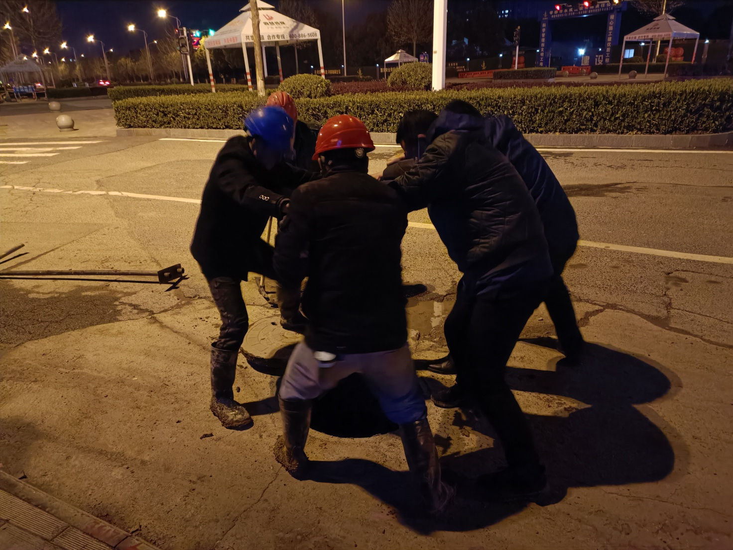 晚上10點,更換工作正式開始,關閘止水、排空積水、拆除舊蝶閥、安裝新蝶閥,流程看似簡單,但每道工序都有嚴格的操作規程,需要現場每個人的付出和配合。時值倒春寒天氣,現場寒風陣陣,工作坑內更是寒氣逼人,但維修人員全然不顧,搶時間,爭速度,分工協作,輪流上陣,連續作戰。
