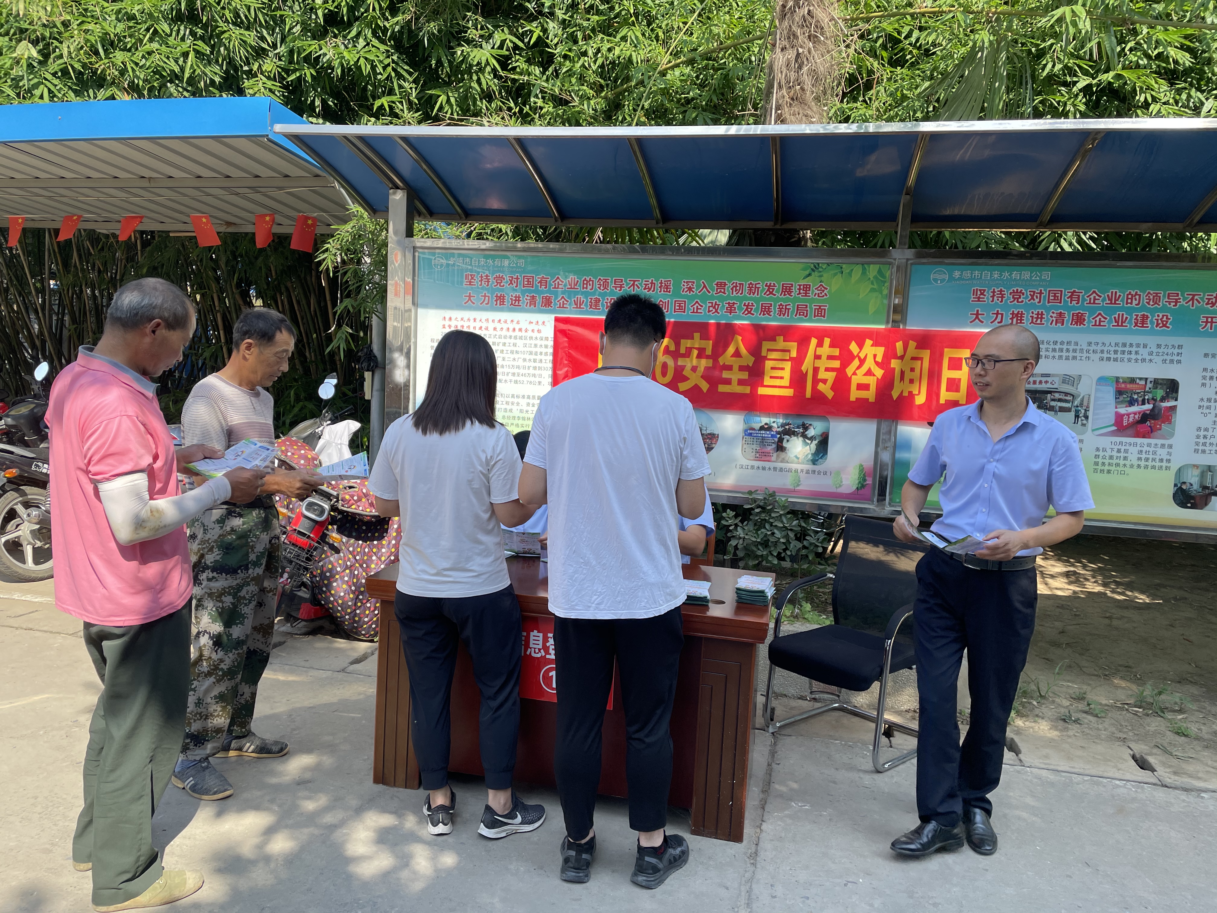 活動現場,工作人員通過設置咨詢臺、宣傳展板、懸掛橫幅、發(fā)放宣傳資料、現場答疑等形式,向在場群眾宣傳新《安全生產法》、“安全生產十五條措施”,耐心為群眾講解用水安全及節(jié)水理念,現場發(fā)放安全宣傳單和安全知識手冊共計50余份,獲得了良好的宣傳效果。
