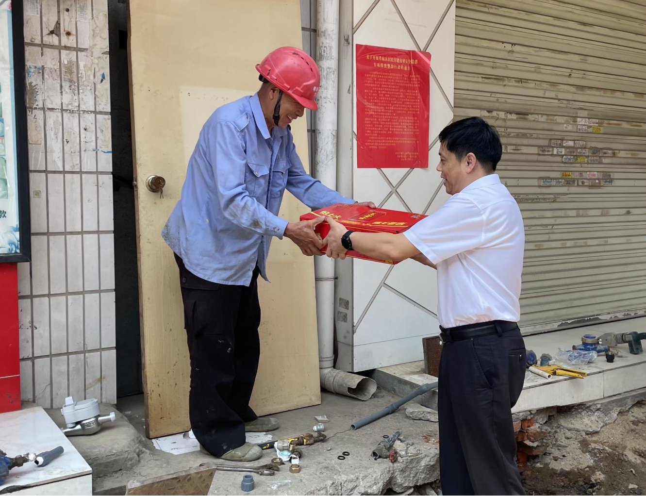 嚴(yán)書高一行看望慰問(wèn)了奮戰(zhàn)在高溫工作崗位上的一線勞動(dòng)者,為他們送去了防暑降溫物品,并叮囑大家注意防暑降溫,確保自身健康安全。同時(shí),要求自來(lái)水公司要切實(shí)關(guān)心職工生產(chǎn)生活條件,優(yōu)化施工安排,科學(xué)確定高溫環(huán)境下作息時(shí)間,強(qiáng)化現(xiàn)場(chǎng)管理,認(rèn)真落實(shí)防暑降溫措施,嚴(yán)格執(zhí)行各項(xiàng)規(guī)章制度,確保平安度夏、安全生產(chǎn)。
