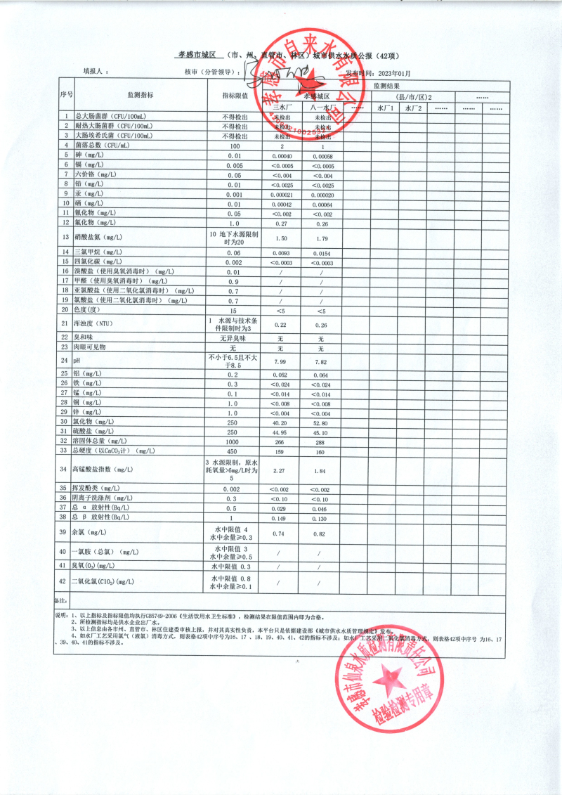 2023年1月水質(zhì)報告
