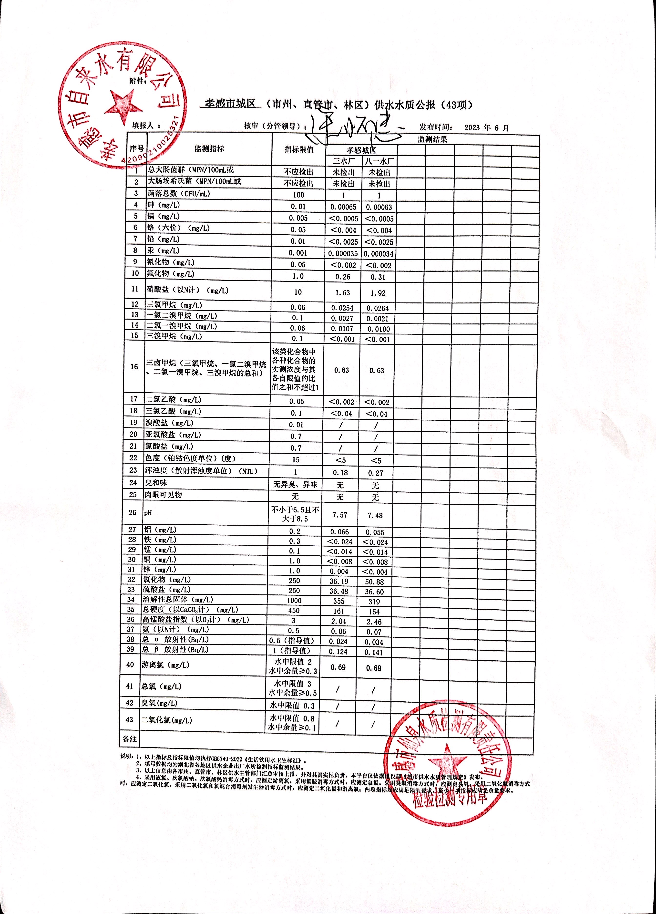 2023年6月水質(zhì)報(bào)告
