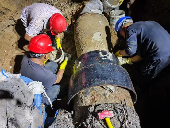 晚上22點(diǎn)30分,管網(wǎng)漏水點(diǎn)被成功修復(fù),保障沿線居民不間斷生活用水。
