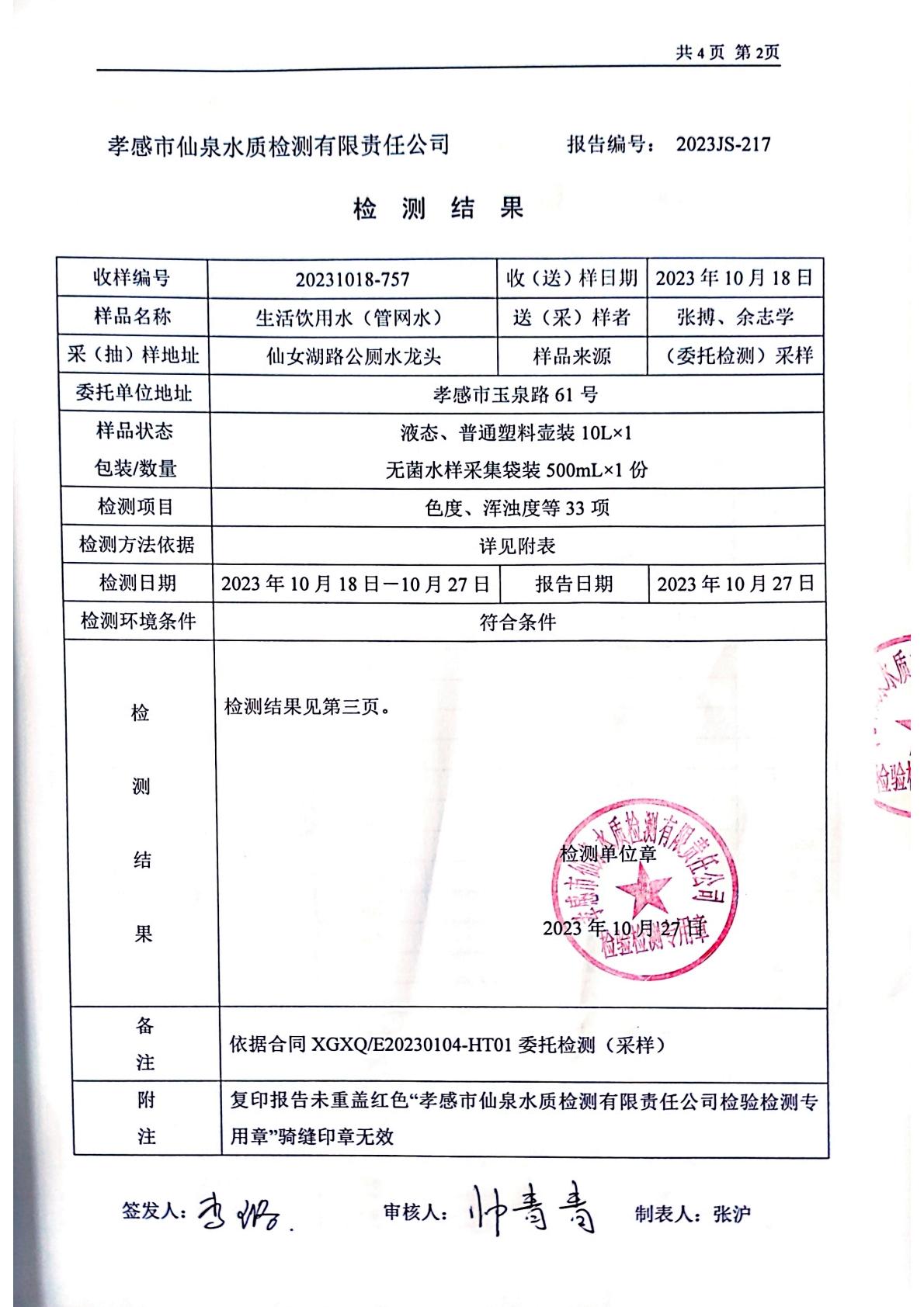 2023年10月檢測報告
