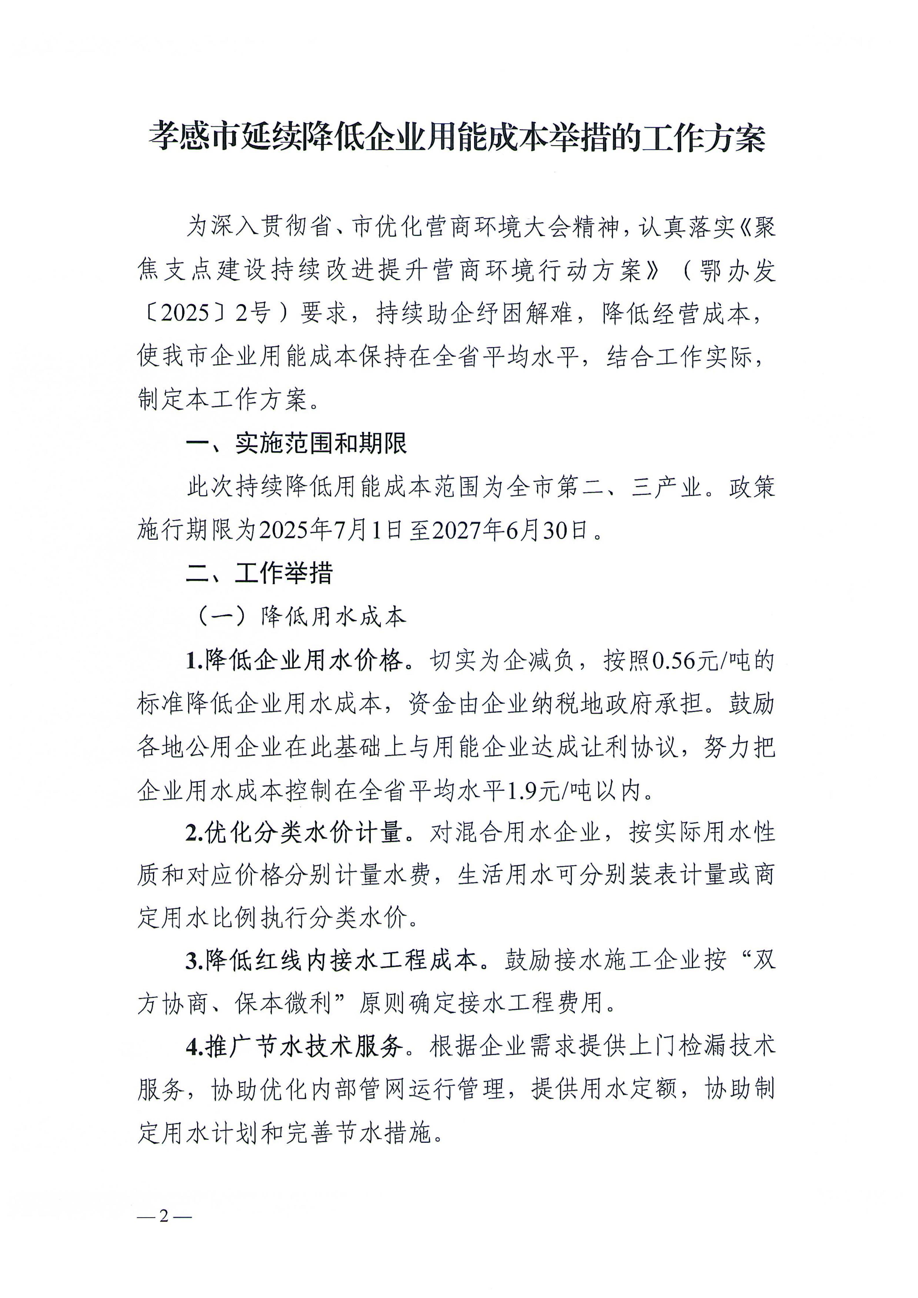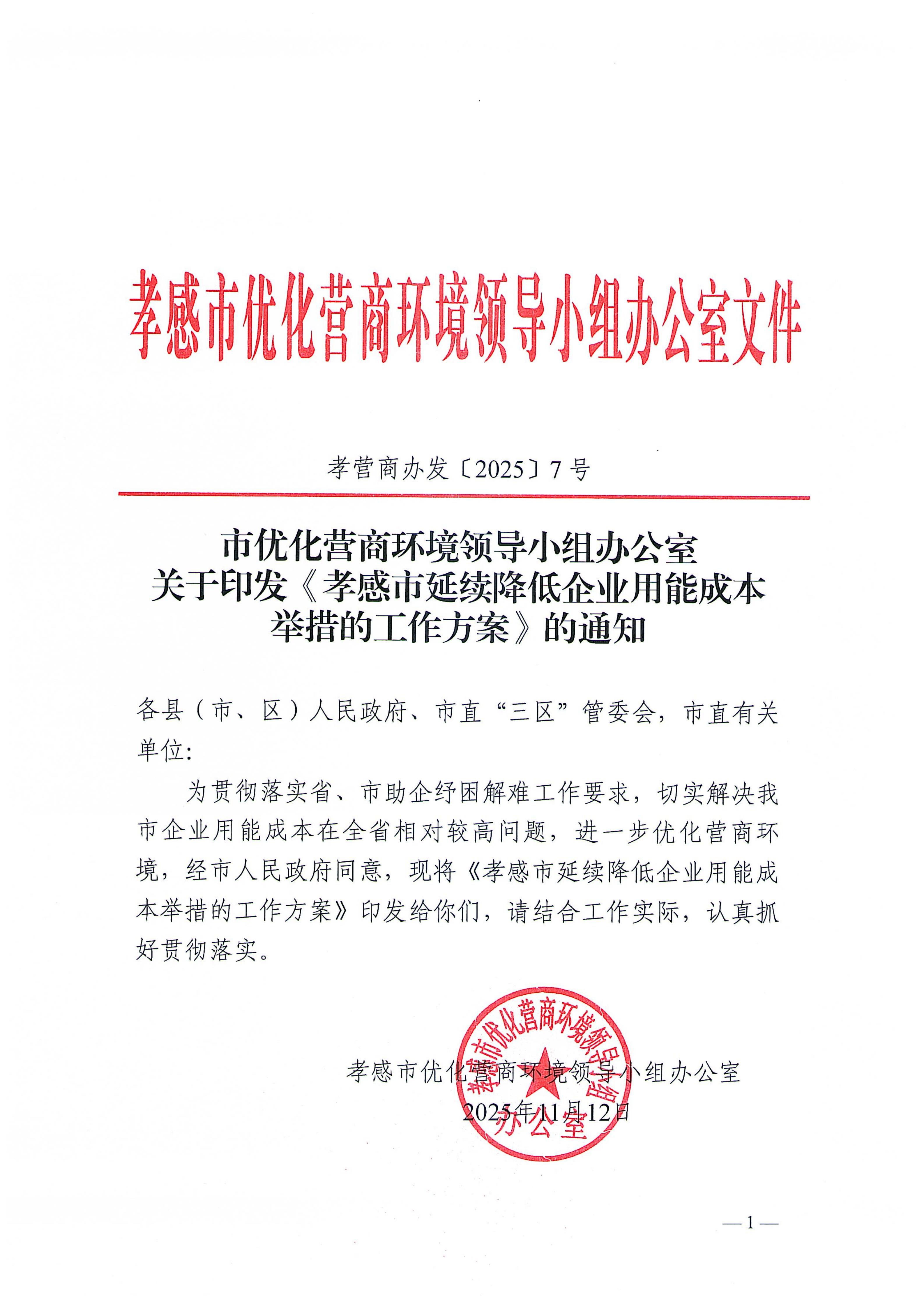 市優化營商環境領導小組辦公室關于印發《孝感市延續降低企業用能成本舉措的工作方案》的通知