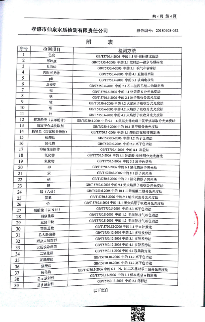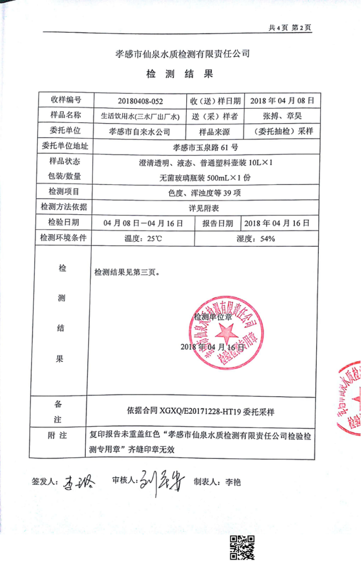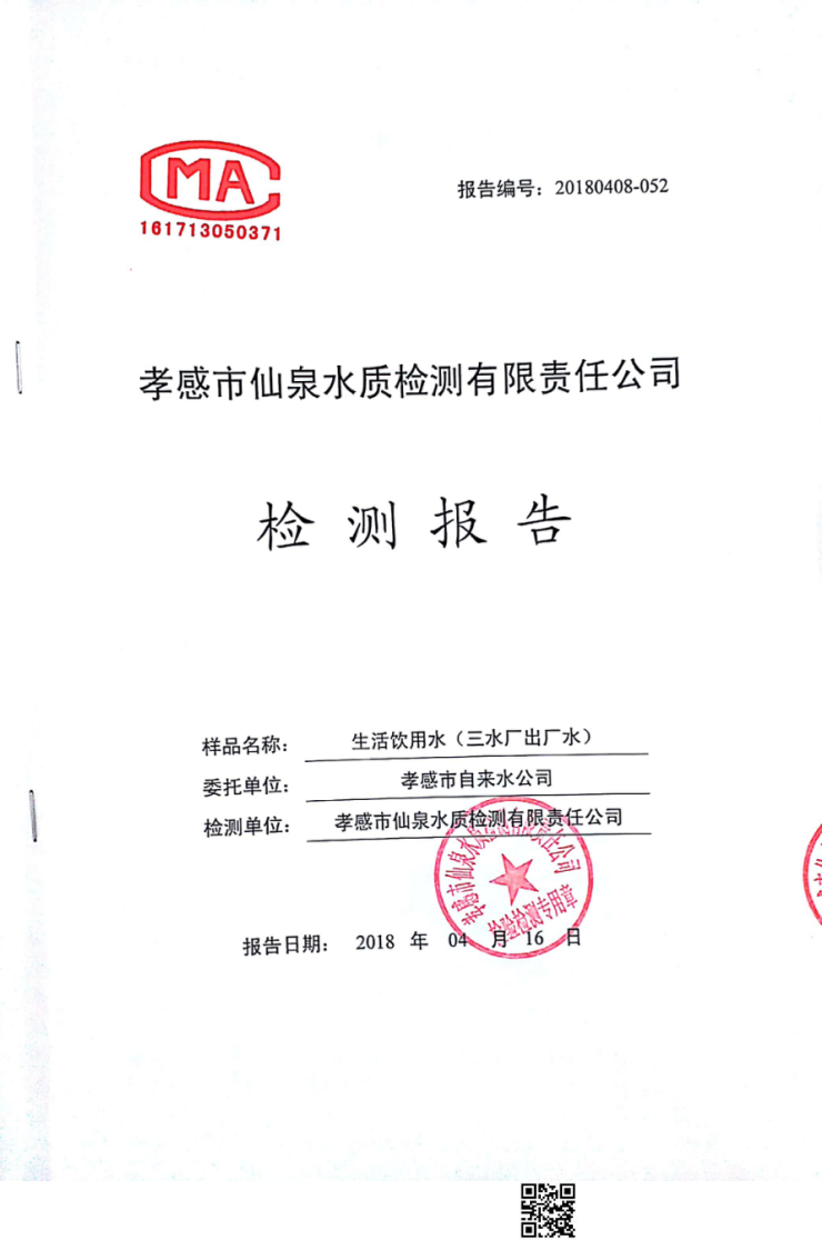 2018年4月水質(zhì)報(bào)告