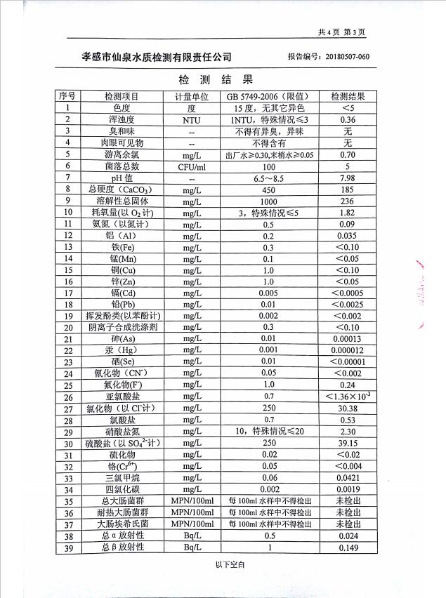 2018年5月水質(zhì)報告