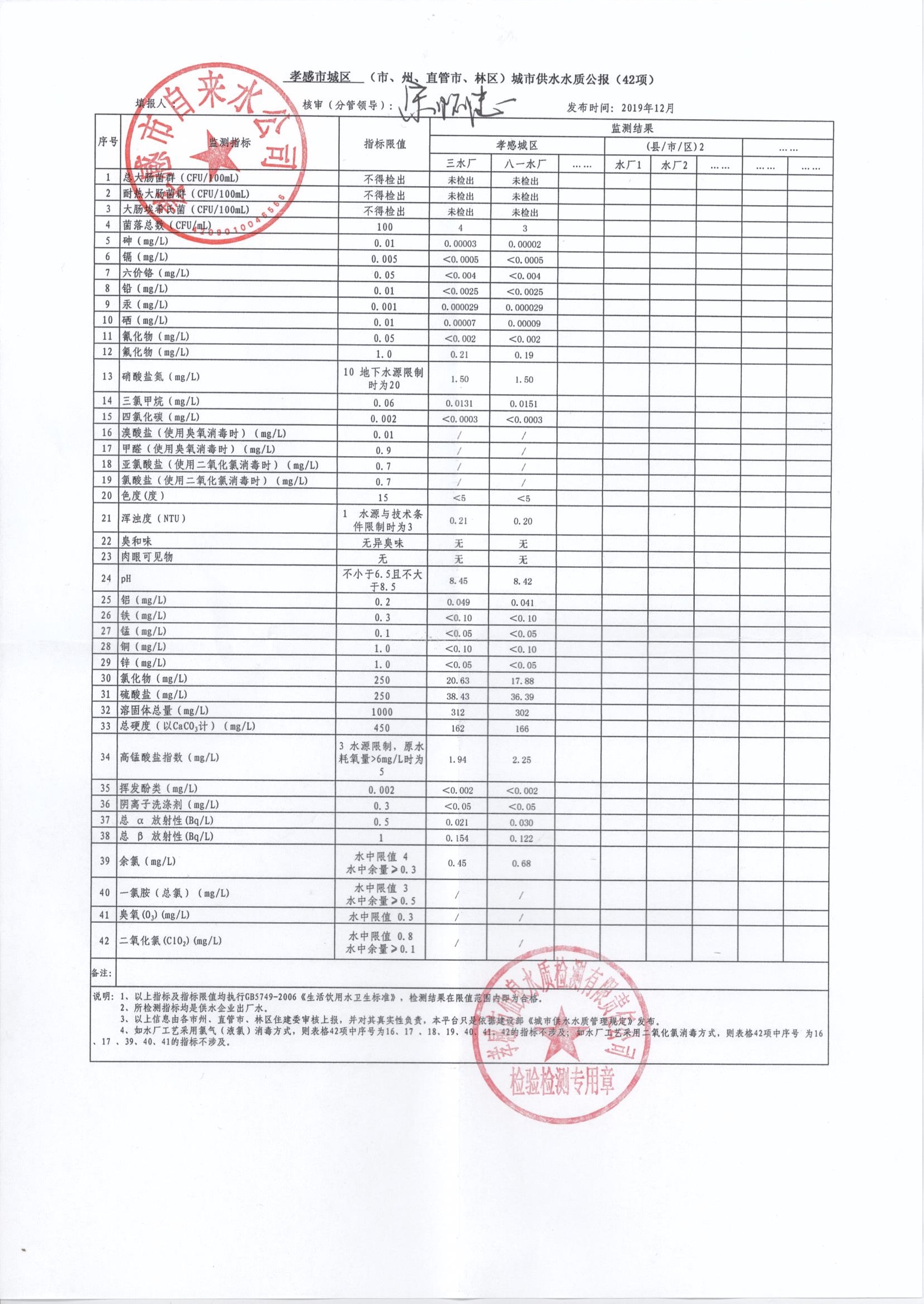 2019年12月水質報告