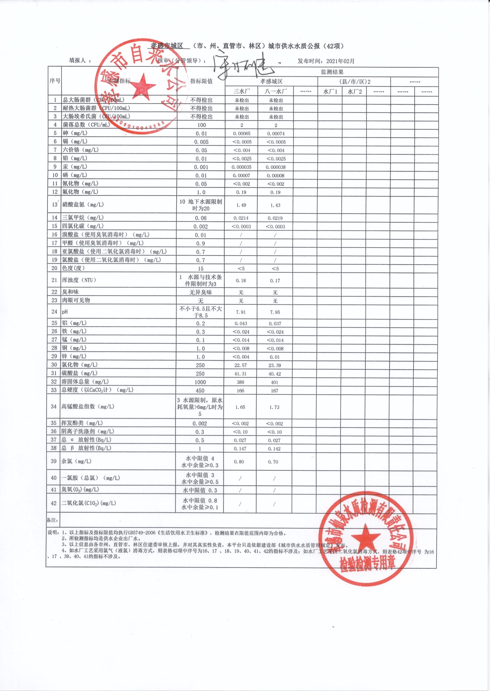 2021年2月水質報告