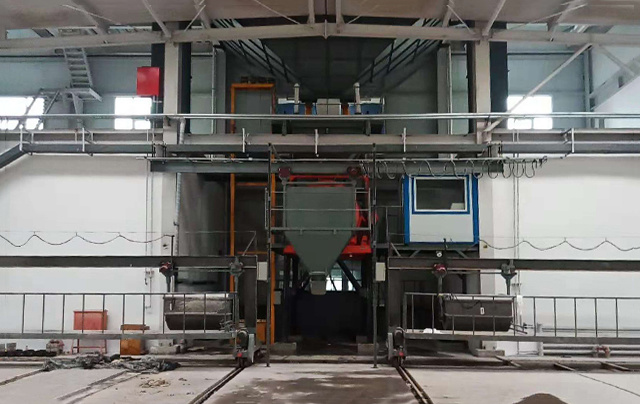 可實現制漿、成型、養護、脫模、組模等全套工序的閉環自動生產,板面一次成型;解決了輕骨料混凝土的攪拌與布料難題,生產效率高、成品質量穩定、外形美觀。